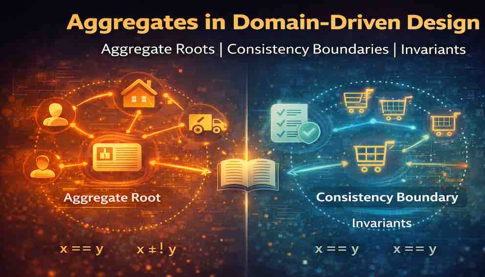 This article explores aggregates in depth. We will examine what aggregates are, why they exist, how to identify them, and how to design them to protect the integrity of the domain. We will see the concept made concrete through examples—an order, a bank account, a calendar—and address the misconceptions that most commonly trip practitioners up.