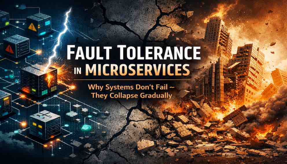 This article explains why microservices don't fail all at once — they collapse gradually, as small slowdowns cascade into system-wide failures. You will learn what fault tolerance really means (controlling how failure spreads, not just preventing it) and why common mechanisms like retries and timeouts can actually make things worse when they interact badly. The key takeaway is that fault tolerance is not about adding more resilience patterns to your system; it is about deciding how your system is allowed to fail, then designing explicitly for that failure mode. Because every system fails eventually — the only choice is whether that failure is controlled or catastrophic.