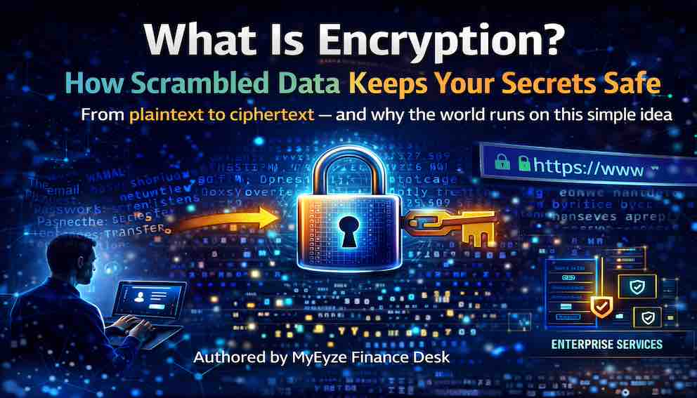 Every time you check your bank balance, send a message, or visit a website with a padlock icon in the address bar, you are using encryption. It is one of the most important technologies you never see. Encryption is the process of scrambling readable data — called plaintext — into an unreadable format called ciphertext. Only someone with the correct mathematical key can unscramble it back into something readable. Everyone else sees only gibberish. This simple idea protects your passwords, your credit card numbers, your private messages, and the confidential files on your laptop. Without encryption, the internet would be a vast public library where every conversation, every transaction, and every secret was visible to anyone who cared to look. This article explains what encryption is, why it matters, where it shows up in your daily life, and how its two main types work together to keep modern systems secure.